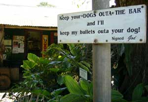 This sign stands at the northern end of Myall Beach at Cape Tribulation